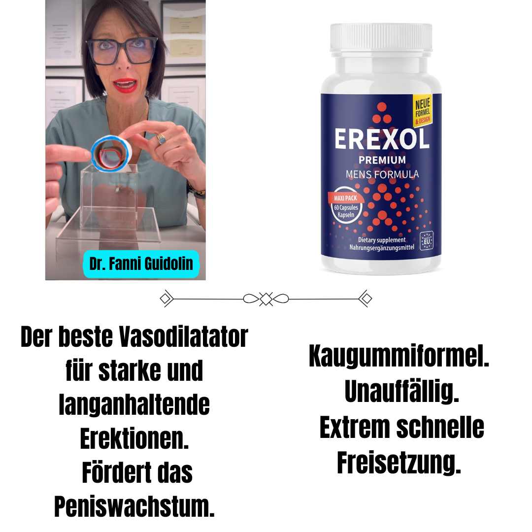 “Erexol® ist zweifellos eine der besten Erfindungen des letzten Jahrzehnts. Ich empfehle diese 100 % natürlichen Tabletten allen Männern wärmstens, die ein aktives Sexualleben zurückgewinnen möchten. Dieses Geheimnis wird von jedem Darsteller in Erwachsenenfilmen verwendet, um die Erektion zu steigern, maximale Penisgröße und -breite zu gewährleisten und eine außergewöhnliche Härte bei jedem sexuellen Kontakt sicherzustellen! Im Gegensatz zu anderen Produkten hat Erexol® eine dauerhafte Wirkung, die nicht über Nacht verschwindet, sondern für immer bleibt.”
