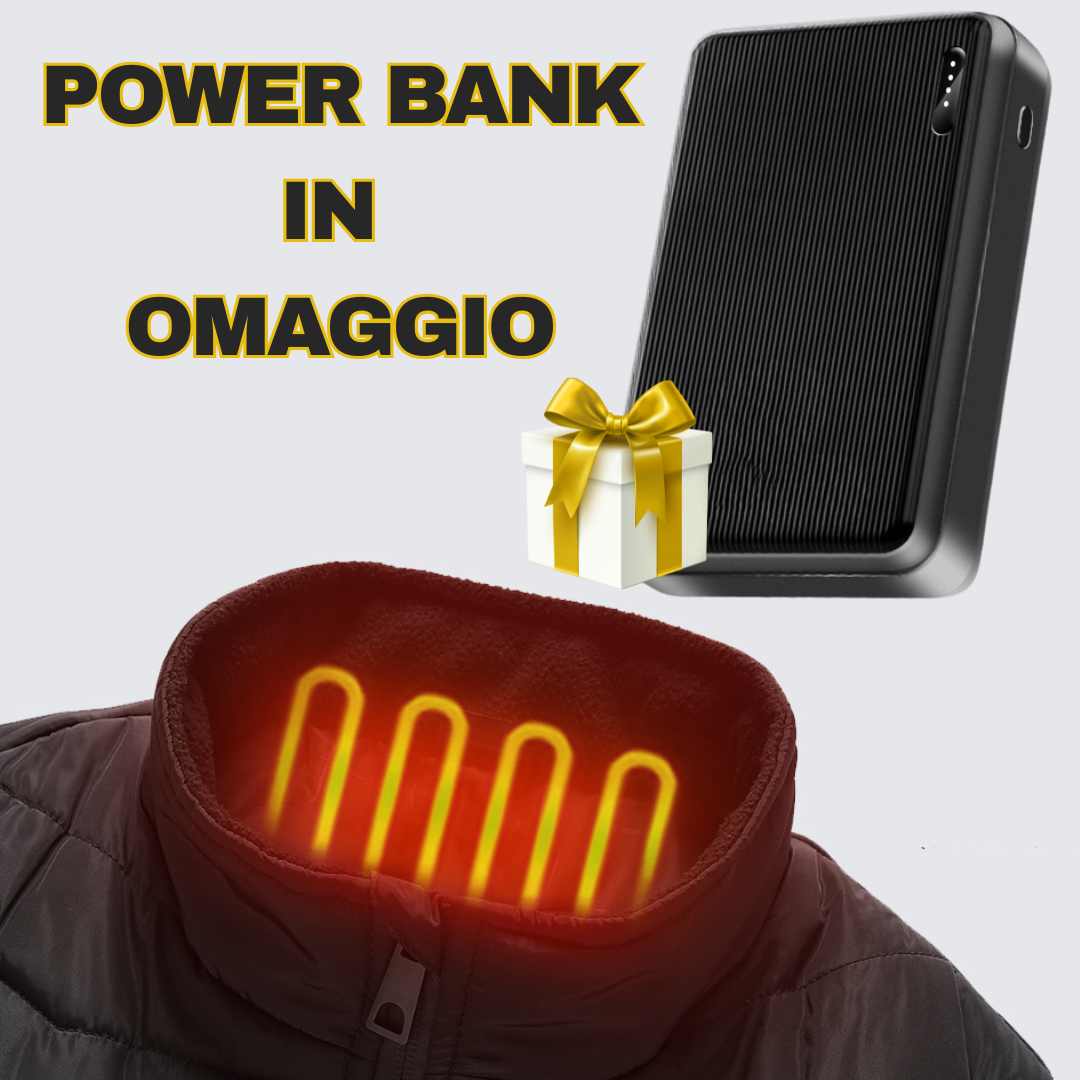 Il power bank in omaggio offre fino a 12 ore di autonomia alla massima temperatura e si ricarica in circa 45 minuti. Puoi utilizzare qualsiasi power bank compatibile (anche più potente): collega il gilet con il cavo USB in dotazione.