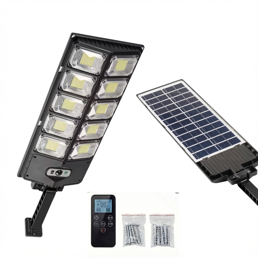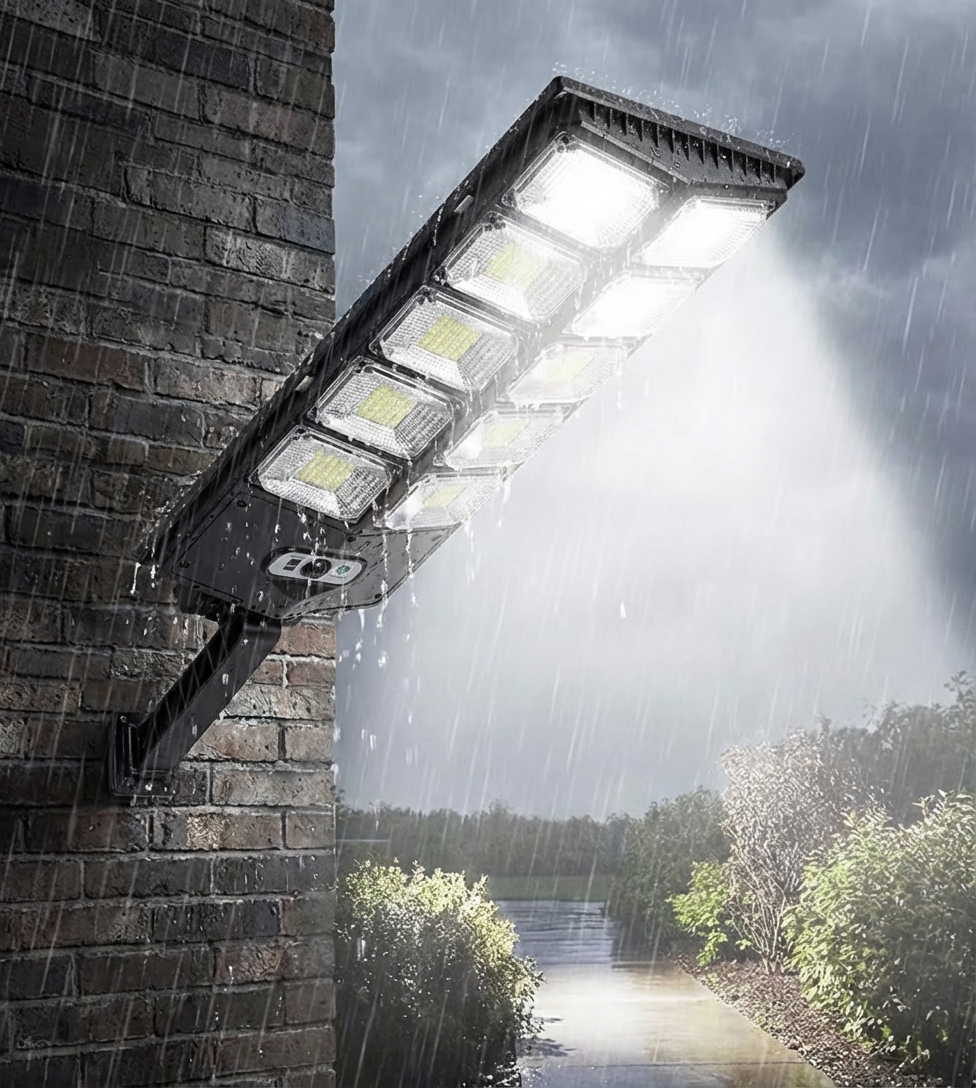 Progettata per illuminare davvero grandi spazi esterni senza lavori elettrici. La lampada integra un pannello solare ad alta efficienza, 504 LED ad alta potenza e una batteria LiFePO4 di qualità automobilistica. Il fascio luminoso è ampio e uniforme, ideale per vialetti, cortili, ingressi, magazzini e capannoni. Il corpo in ABS industriale è resistente a pioggia, sole e gelo, così puoi lasciarla all’esterno tutto l’anno senza preoccupazioni.