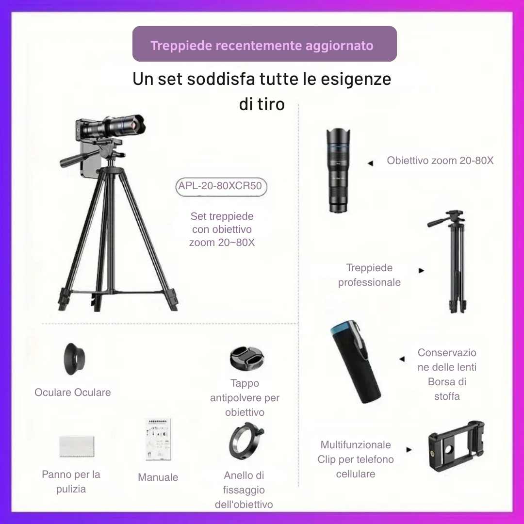 Perfetta per viaggiatori, fotografi amatoriali, birdwatcher, appassionati di sport e creatori di contenuti.