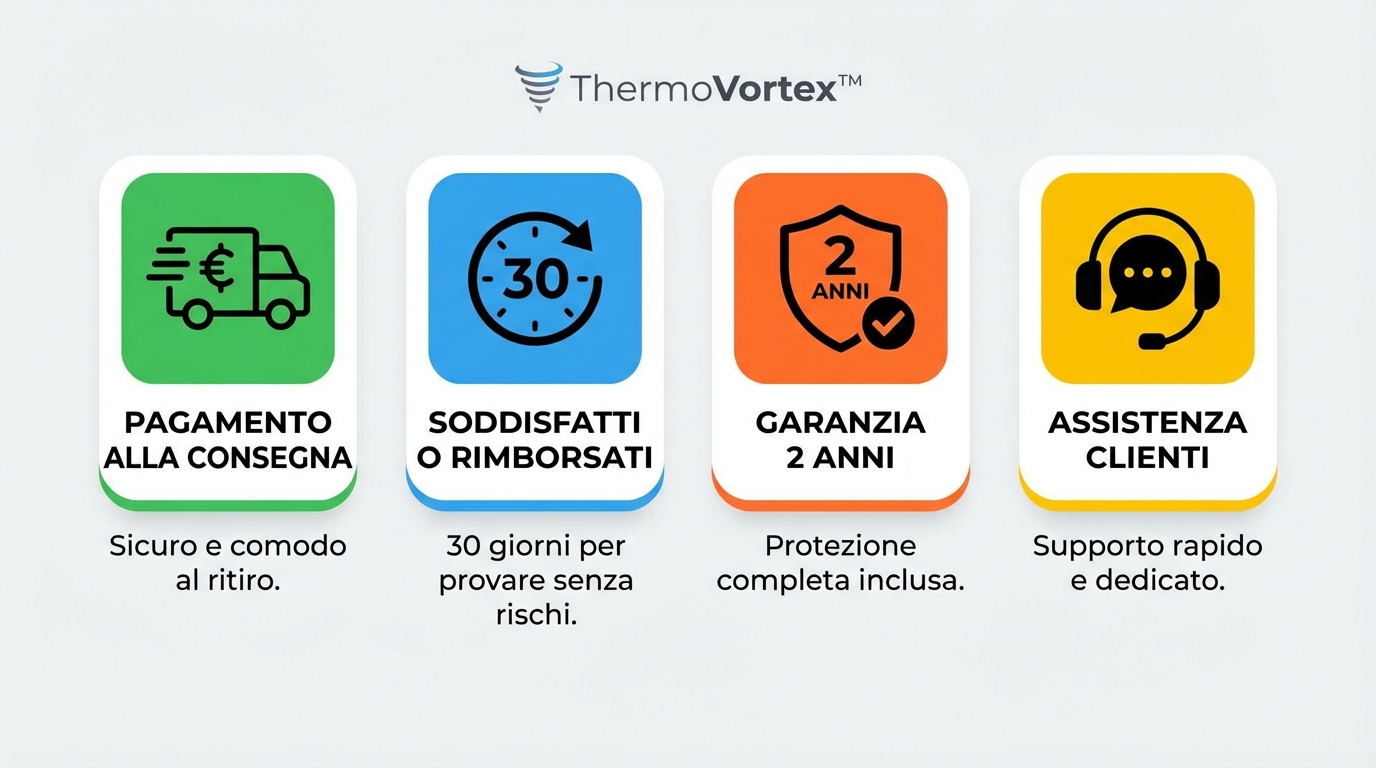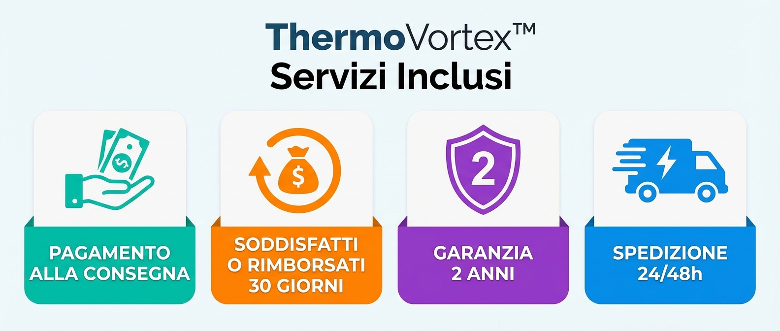 Ho visto questo ThermoVortex™ e l’ho preso perché non richiede installazione. Arriva, lo tolgo dall’imballo, lo metto in camera e lo collego alla presa. Niente tubi, niente tecnici, niente condominio da avvisare.