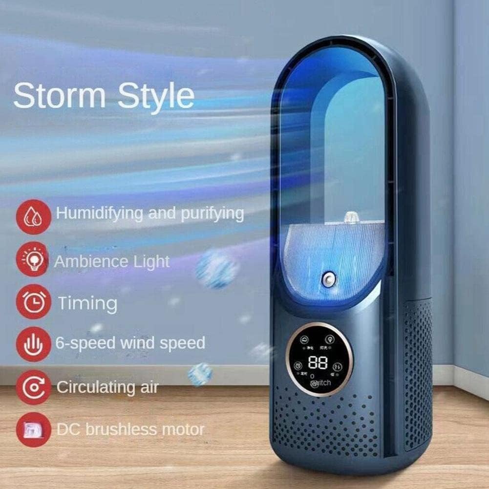 The modern design without blades ensures safety and style. Weighing only 800g, you can easily move it anywhere. 3-in-1 function to cool, humidify and purify the air.