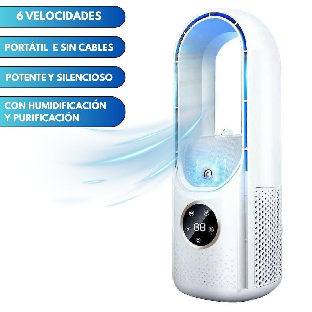 Cordless, powerful and quiet 3-in-1 portable air conditioner with 6 adjustable speeds, easily cools any room without making any noise