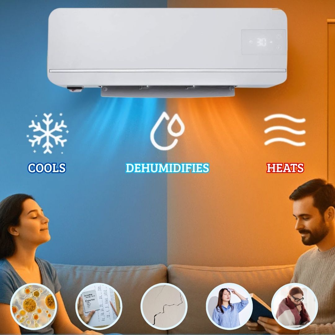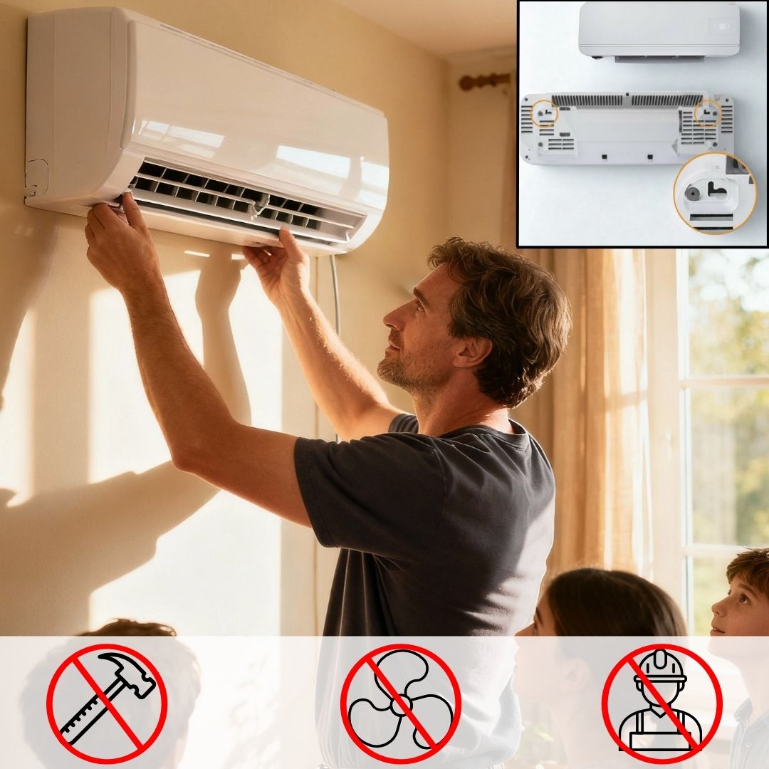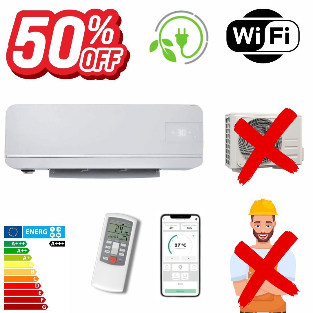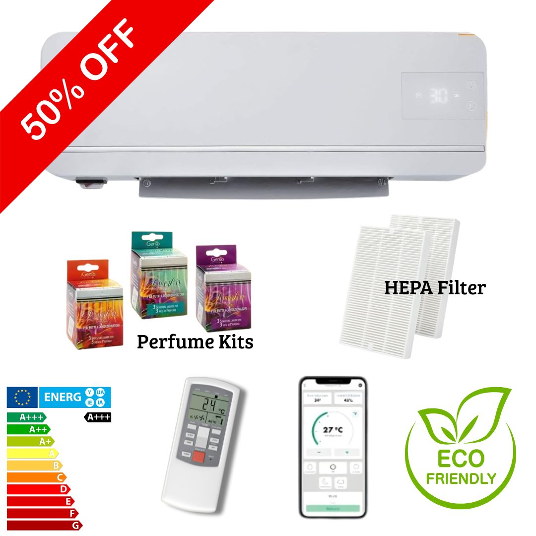 Grazie alla sua efficenza A+++, riscalda e raffredda salotto, bagno o camera da letto tutto l'anno, senza rumori di notte, senza alzare la bolletta e senza chiamare alcun tecnico.
