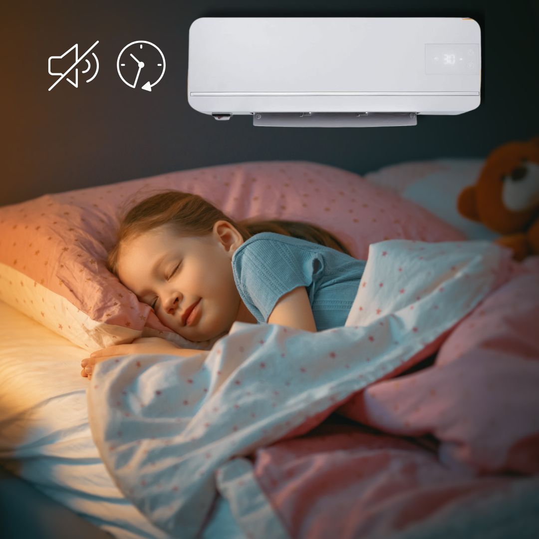 Sonni tranquilli e risveglio riposato. In Modalità Notte la ventola riduce i giri e il compressore inverter modula la potenza con gradualità, evitando picchi sonori e mantenendo stabile la temperatura; puoi impostare timer e spegnimento automatico per dormire senza pensieri.