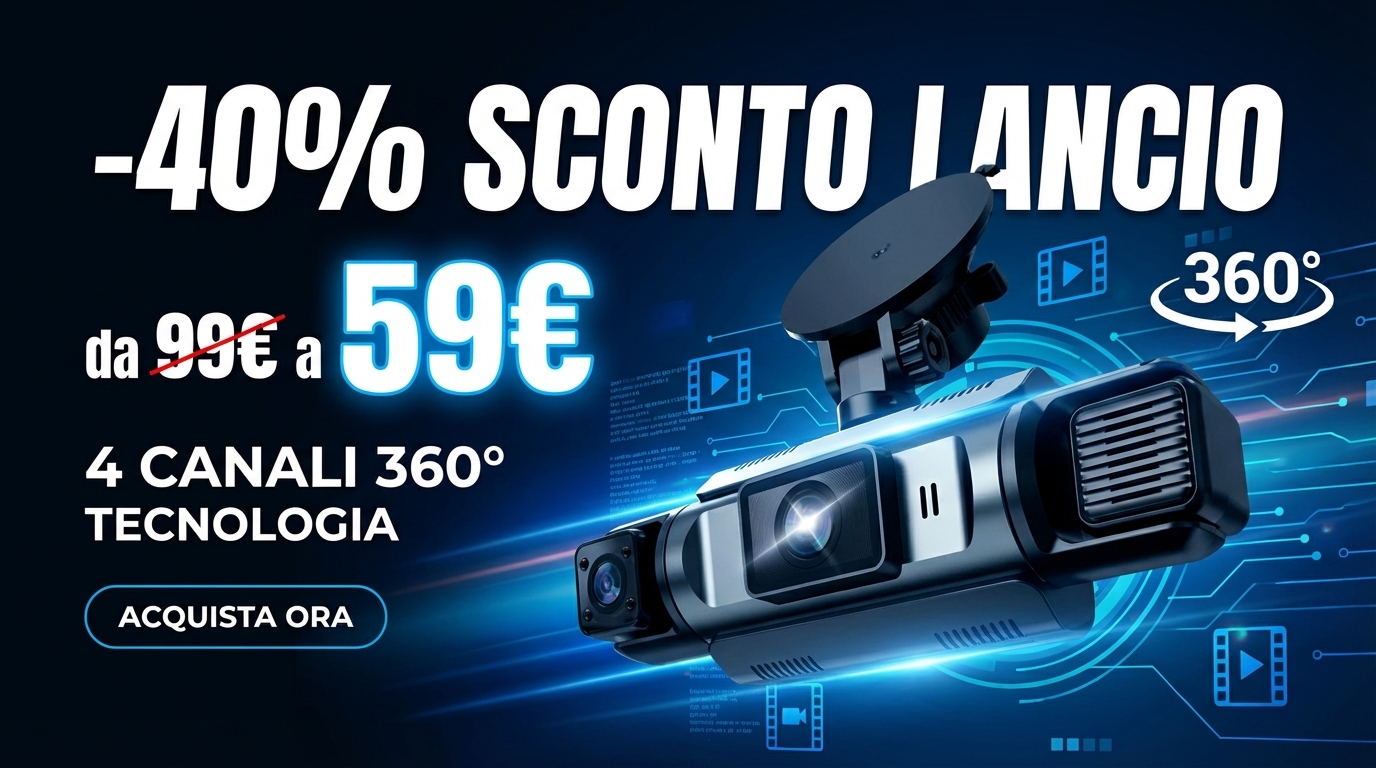 Installazione semplice e risultato incredibile. Prima avevo una dashcam solo frontale e mi ero giĂ trovato nei guai per un urto laterale non registrato. Con questa vedo tutto: fronte, lati e dietro sullo schermo.