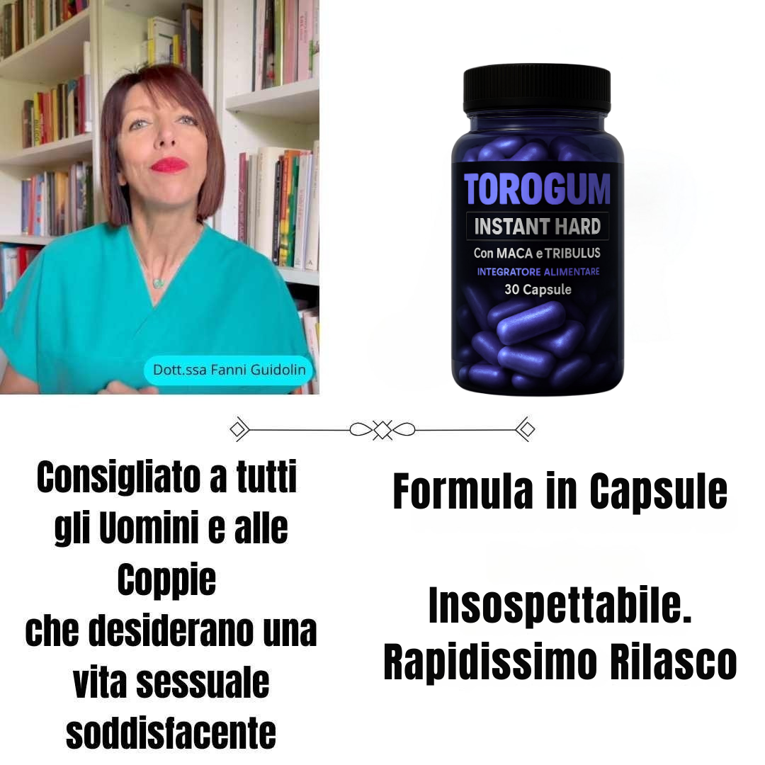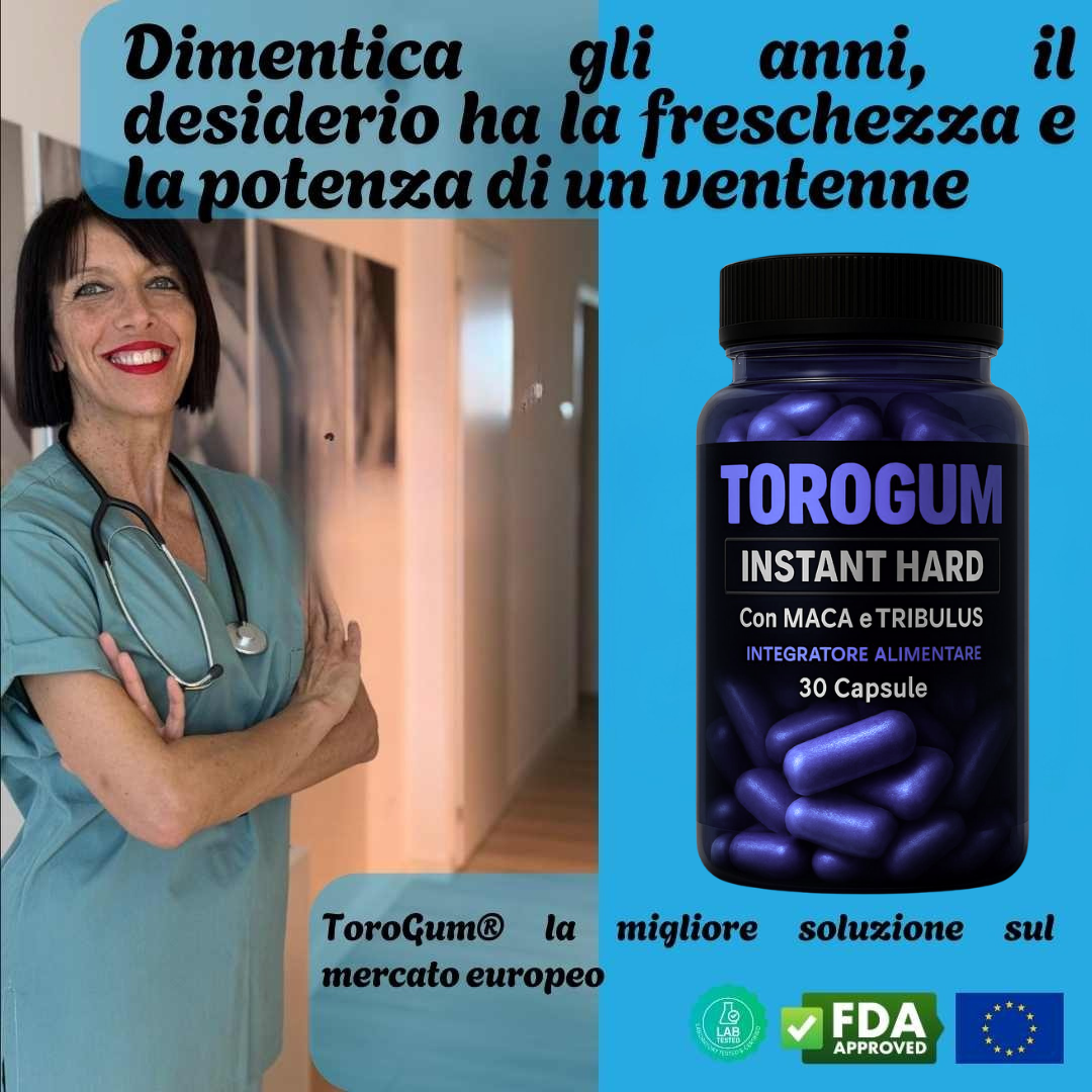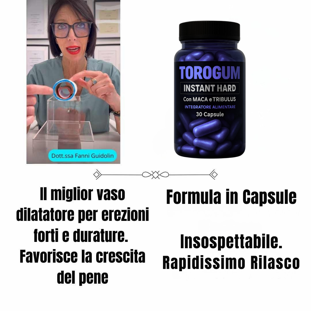 “ToroGum®  è senza dubbio una delle migliori invenzioni degli ultimi dieci anni. Raccomando queste compresse 100% naturali a tutti gli uomini che desiderano riacquistare una vita sessuale attiva. Questo segreto, viene utilizzato da qualsiasi attore di film per adulti per aumentare l’erezione, garantire il massimo volume e larghezza del pene, e assicurare una durezza eccezionale in ogni rapporto sessuale! A differenza di altri prodotti, ToroGum® ha un effetto duraturo, che non svanisce durante la notte, ma rimane permanente.”