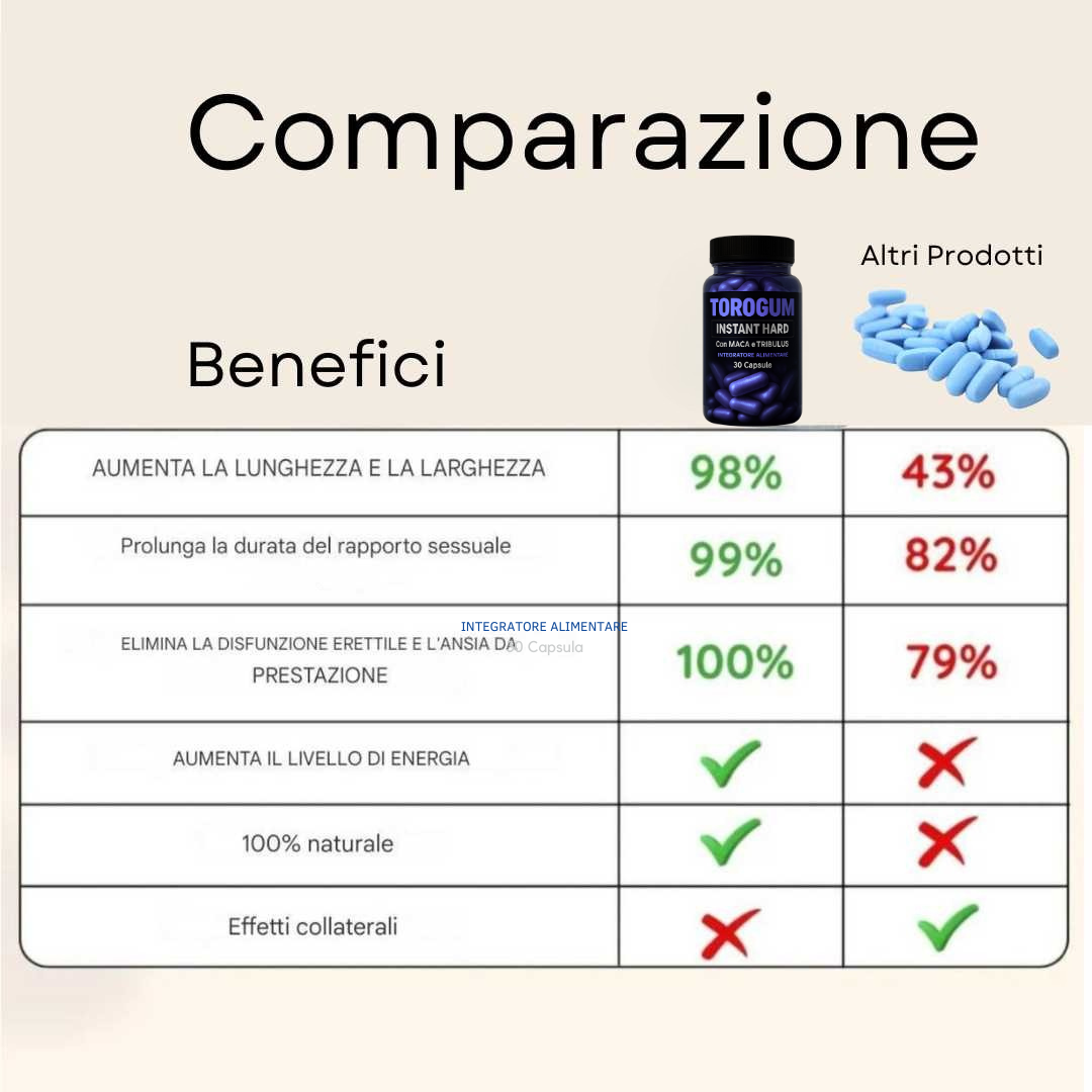 Basta assumere le capsule di ToroGum® prima di ogni rapporto sessuale per notare i benefici immediati!